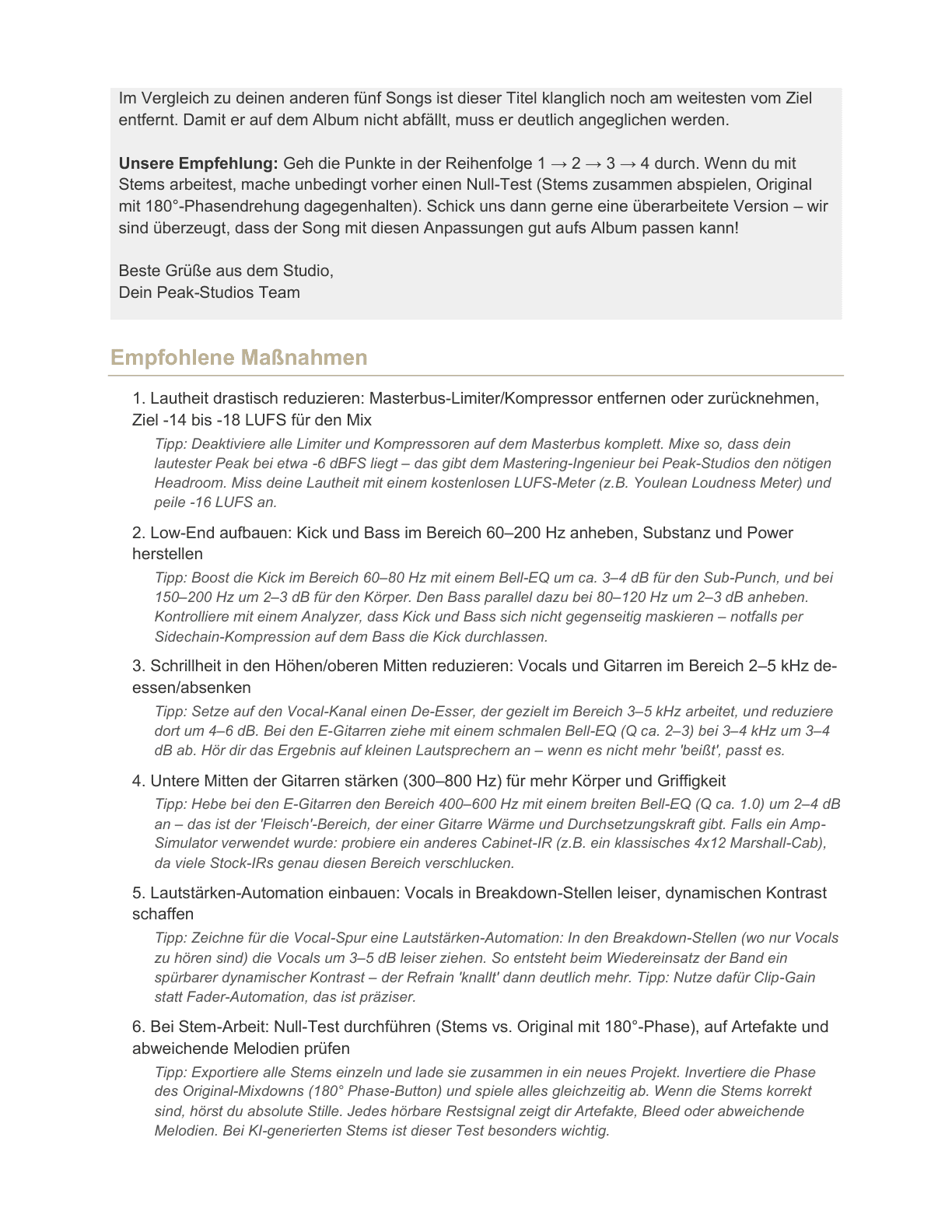 - ✅ Technische Analyse mit konkreten Messwerten – für eine fundierte Einschätzung deines Mixes