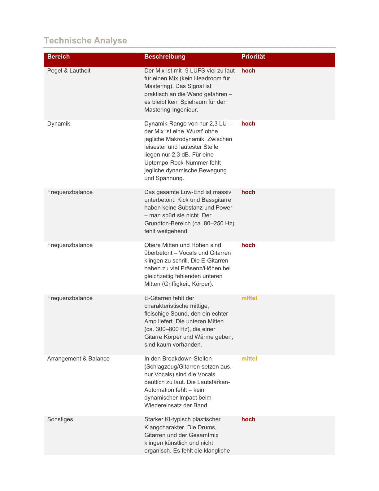 Ausführliche Mix-Analyse mit konkreten Empfehlungen, technischer Auswertung und klaren Optimierungsschritten.MIX ANAYLSE ULTIMATE